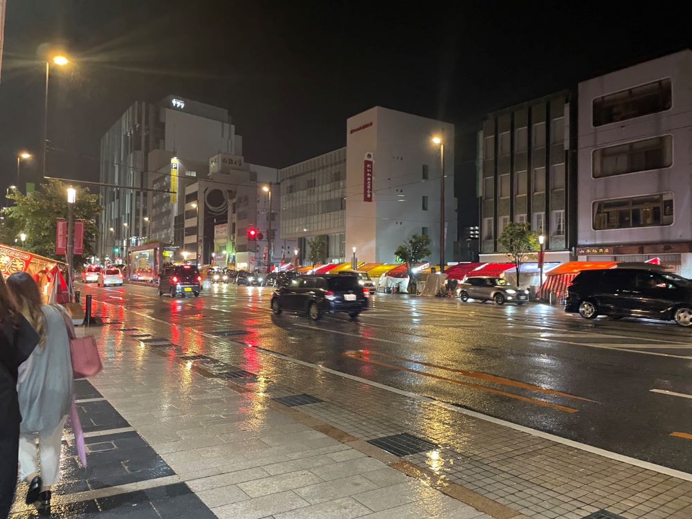 あいにくの雨に見舞われ、傘をさしながらの屋台巡りとなってしまいました。