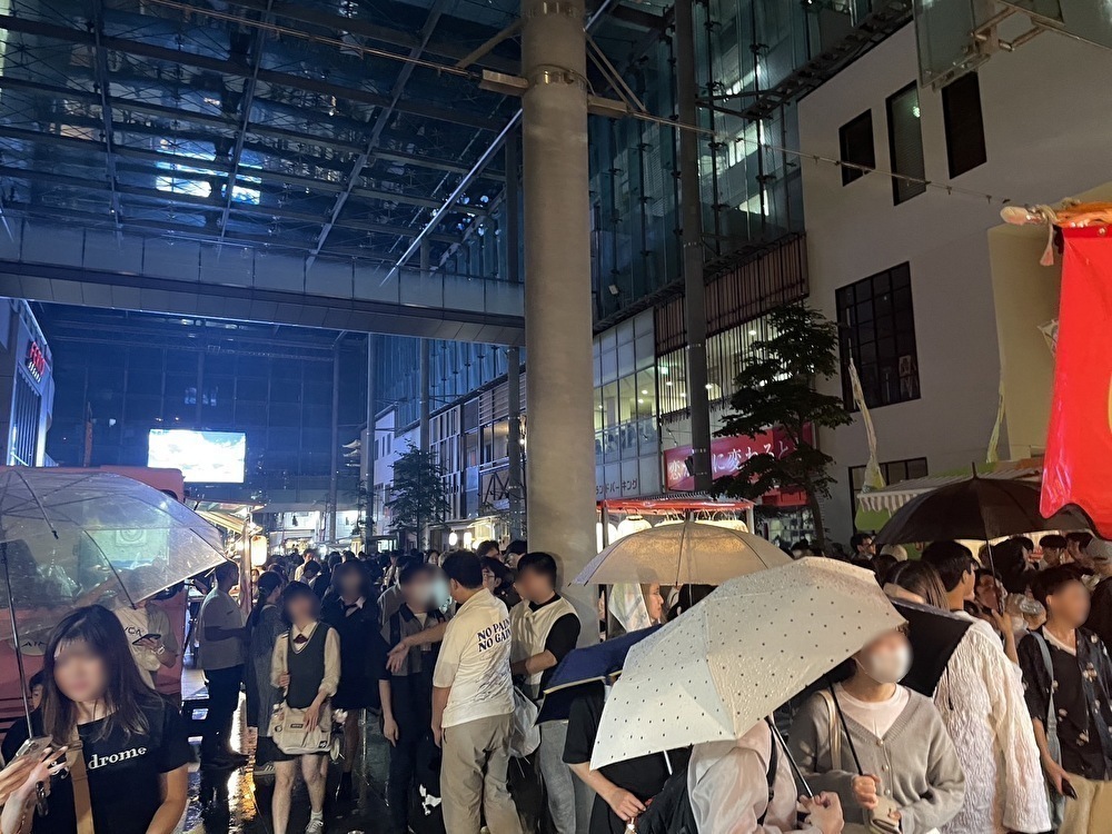 しかし雨にも負けず風にも負けず、人の波はさらに勢いを増しています…!