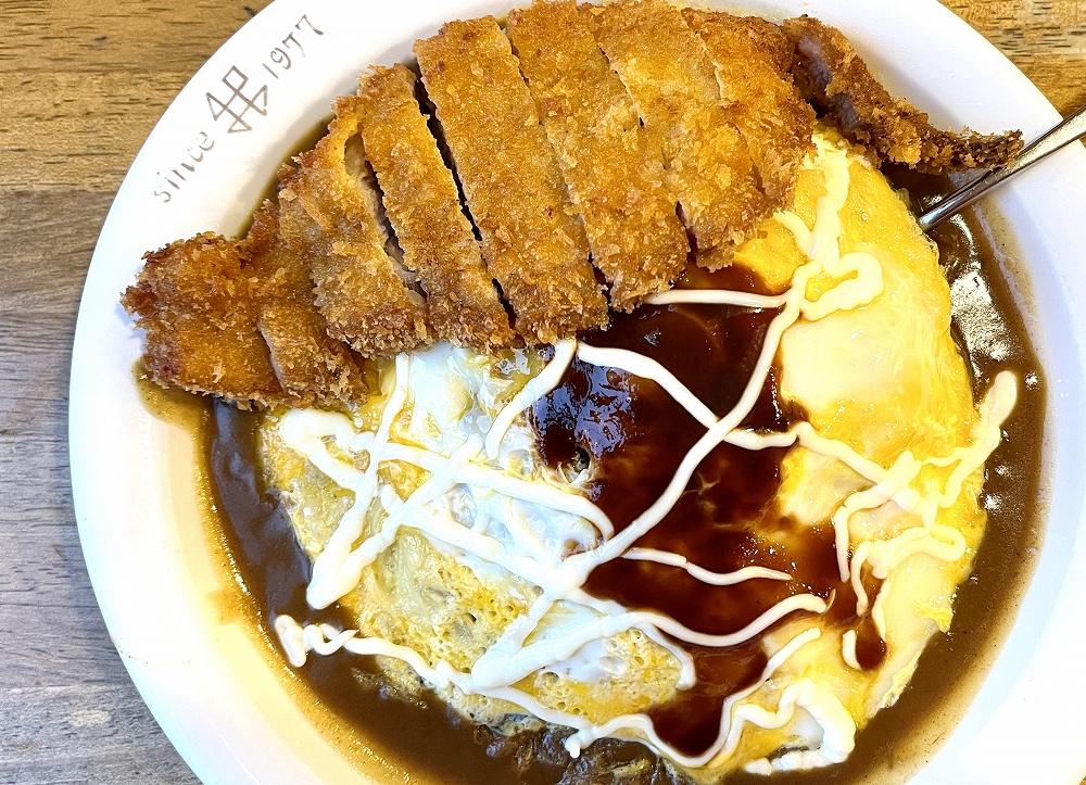 ボリュームがあり、男性に人気の高いカツカレーですが、ライスは小盛り(-50グラム)もリクエストできるので、量を調整したい人におすすめです。