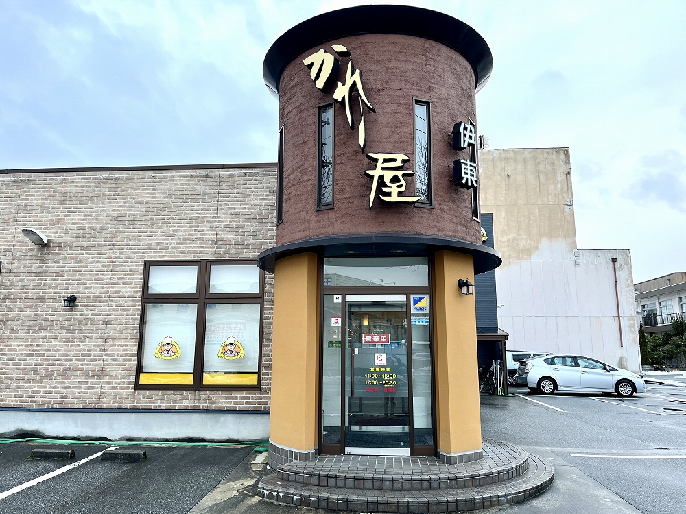 かれー屋伊東は、1977年創業のカレー店。富山駅から3キロほど南へ向かったところにあります。雪見通りに面していて、食事どきはとてもにぎやかです。