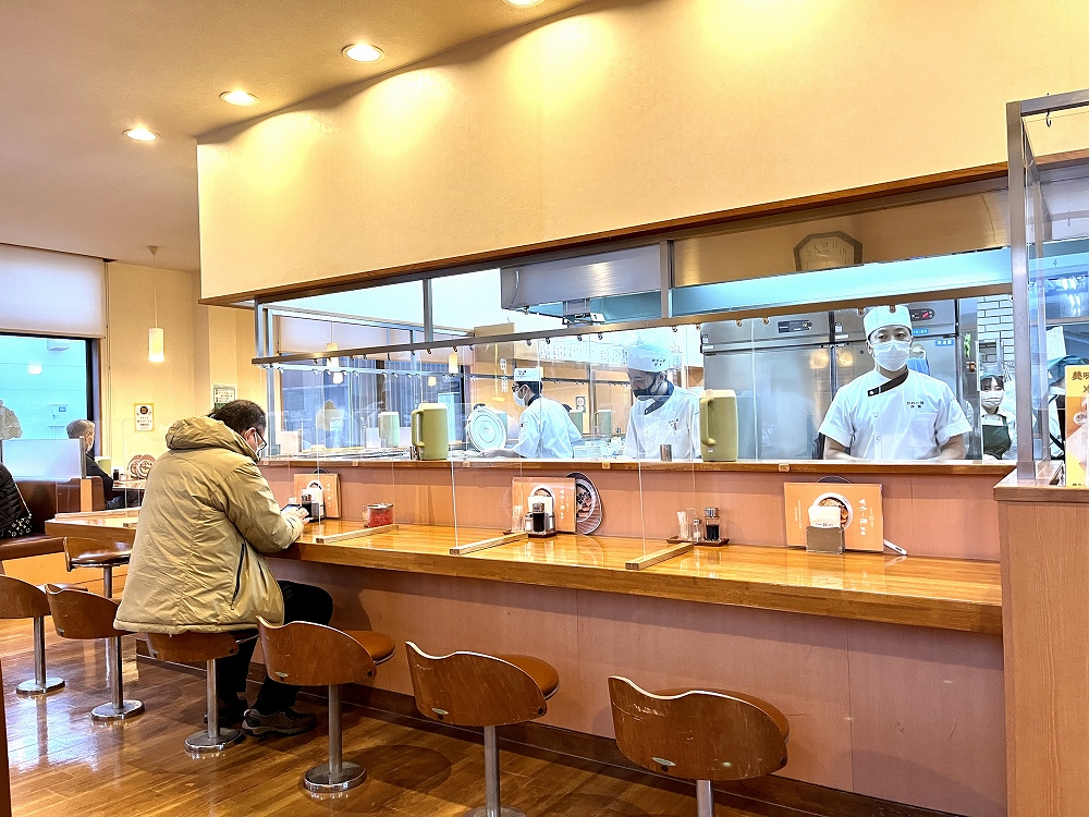 店内に入ると、入り口付近のショーケースに、メニューサンプルが展示されていました。下段には有名人のサイン色紙が置いてありますね。