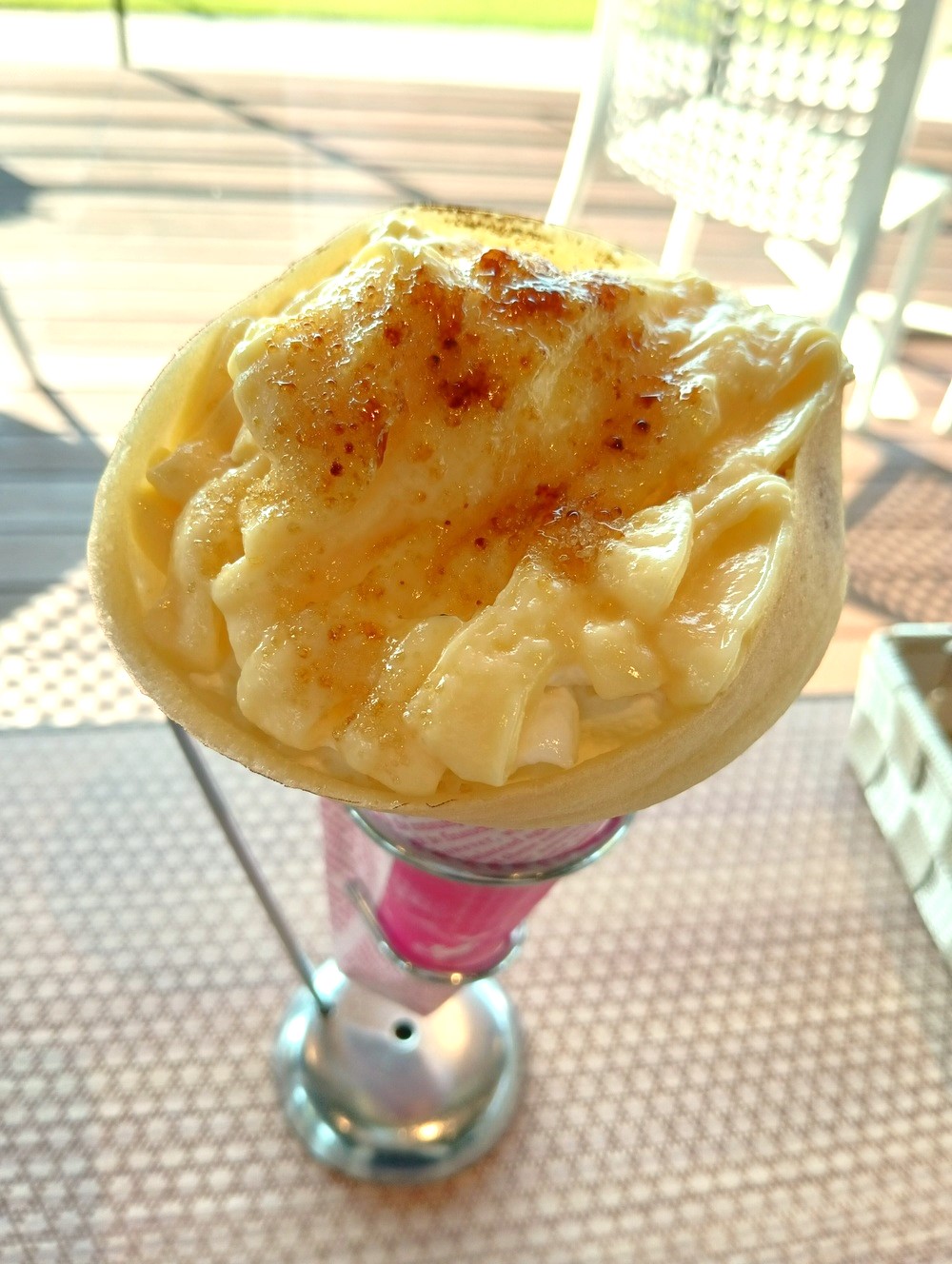 表面はパリパリにあぶられたカスタードクリーム、中は生クリームとイチゴソースがたっぷり入っていました。