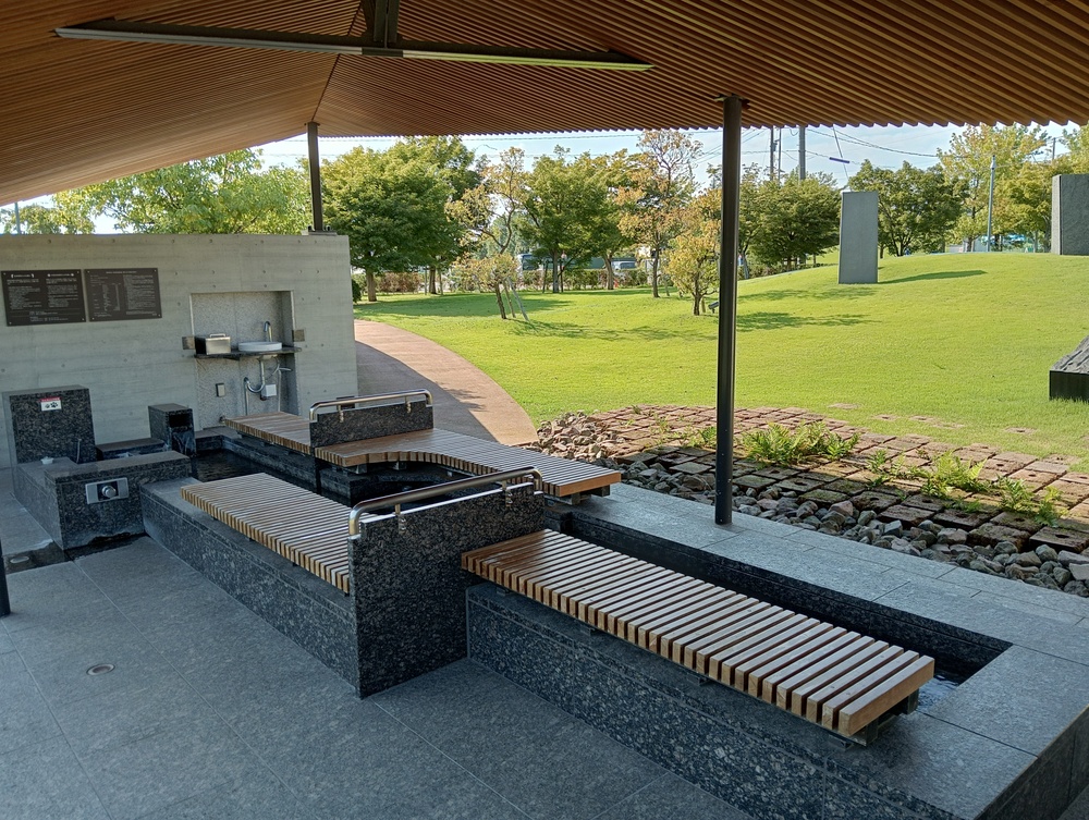 足湯は広々としており、複数人入っても互いが気にならない程度には余裕があります。