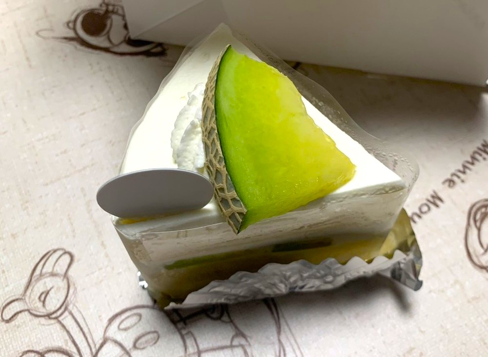 ケーキの上にある大きなメロンは果肉が甘くて、ケーキの中にも多くのメロンが入っていたので、メロン好きにはぴったりのケーキです。