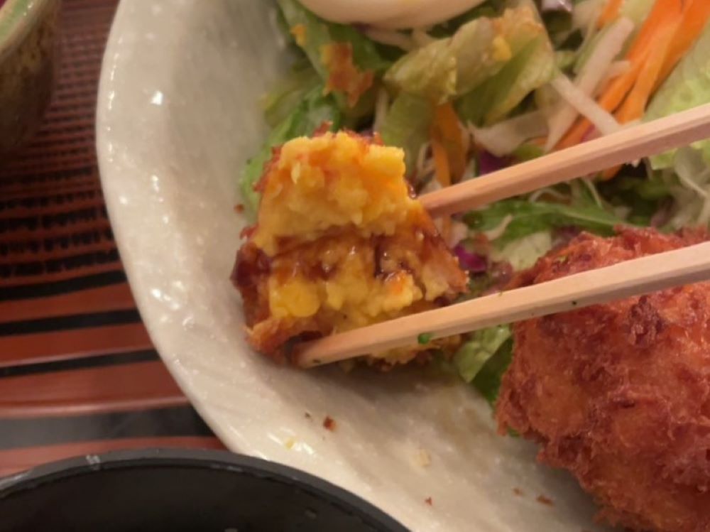 おりーぶさん自家製のカニクリームコロッケはなんと中身が黄色。