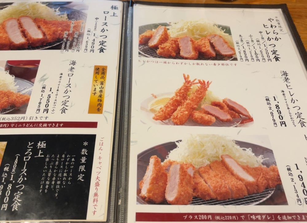 看板メニューであるロースかつ定食やヒレかつ定食はもちろん、エビフライやかつ丼、しょうが焼きなどのメニューも豊富に揃っています。