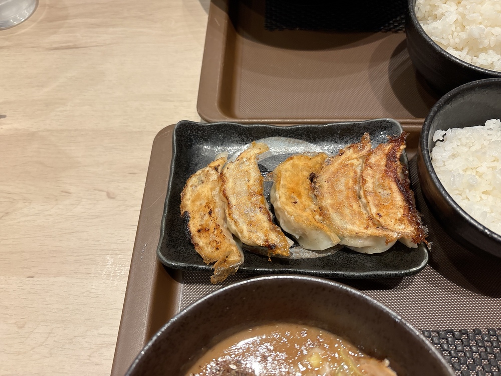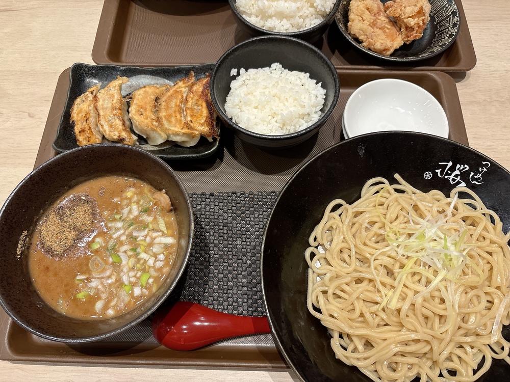 今回私はつけ麺の餃子セットを選び、同行者がからあげを頼んだので、シェアしました。