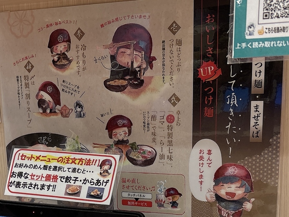 お店にはつけ麺をよりおいしく食べるためのオススメの食べ方があるらしく、席に張ってありました。