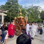 案内に沿って大通りを曲がって閑静な住宅街を少し歩くと…前方にのぼりがハタハタ揺らめいているのが見えてきました!