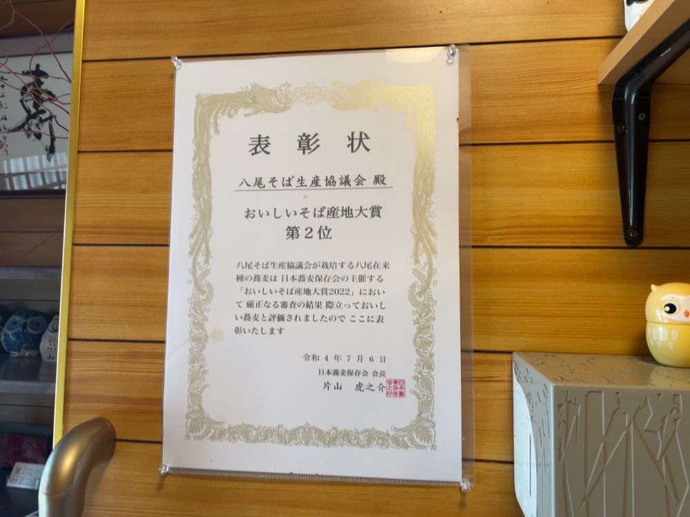 福籠さんのお蕎麦に使われている富山県の八尾在来種のそばは、日本蕎麦保存会の「おいしいそば産地大賞2022」で第2位を獲得したそうです。