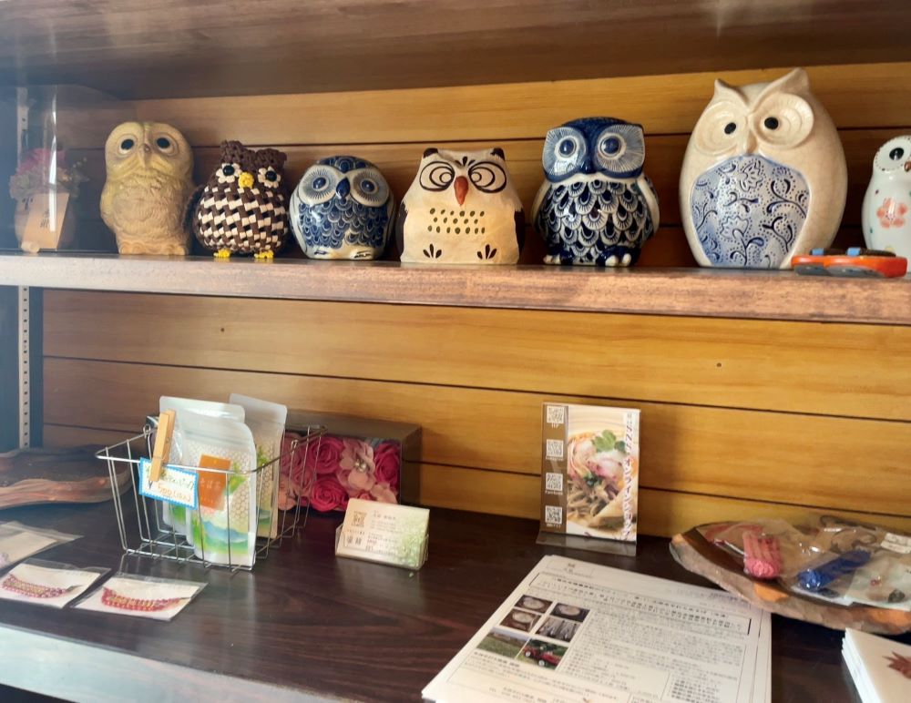 本物のご自宅のような戸をカラカラッと開けると、温かい木の温もりとかわいらしいふくろうの置物たちがお出迎えしてくれました。