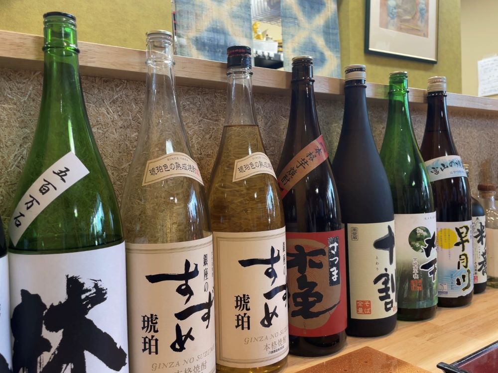 趣たっぷりの様相に、富山にちなんだ銘柄の日本酒がずらっと並ぶ姿がマッチしています。