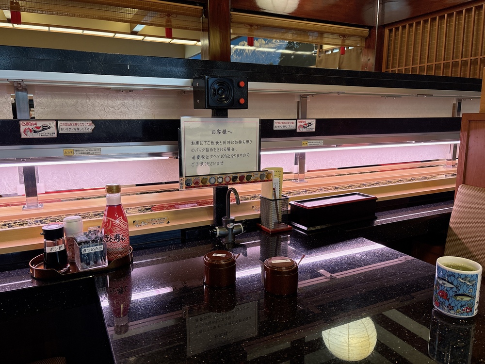 ランチは店員さんが持ってきてくれましたが、基本的には注文するとお寿司がレールにのって運ばれてきます。