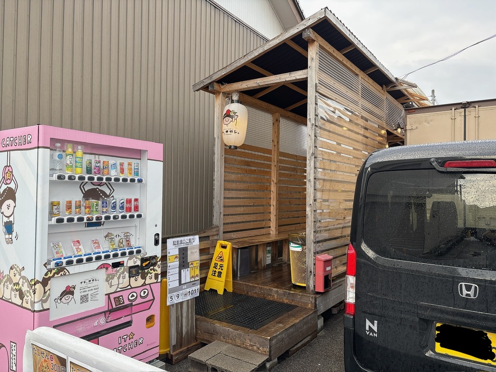 お店は県道177号沿いにあります。かわいいキャラクターの描かれた自動販売機と旗が立っているのでわかりやすいです。