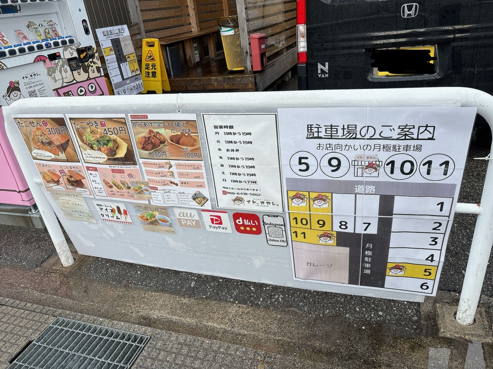 駐車場はお店の向かい側にあります。停められる場所が決まっているので、確認してから駐車するようにしてください!