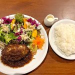 サラダ、スープ、ご飯、お肉、つけものがついてきます。ランチだとご飯がおかわりし放題なので、食べ盛りの子どもにもピッタリ!おかわりのご飯は大、中、小から選ぶことができます。
