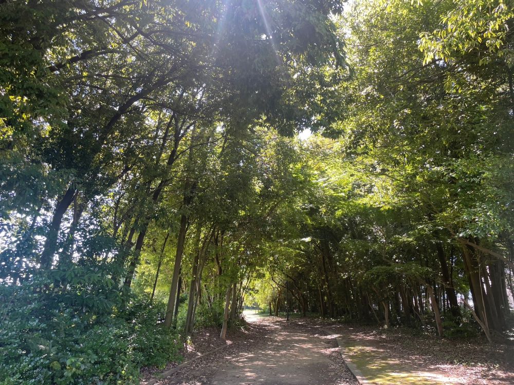 公園内の各所に木々が植わっていて、敷地をぐるりと囲むように続く木陰の散歩道を使えば、強い日差しに当たることなく移動が可能です。