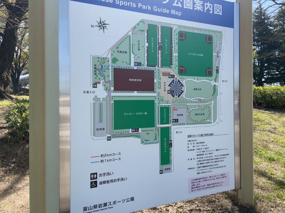 案内図を見ると、たくさんの広場と運動スペースがあることが分かります。