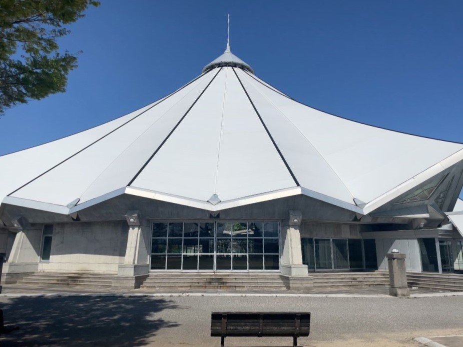 公園内の中央にそびえ立つ「健康スポーツドーム」は岩瀬スポーツ公園のシンボル。