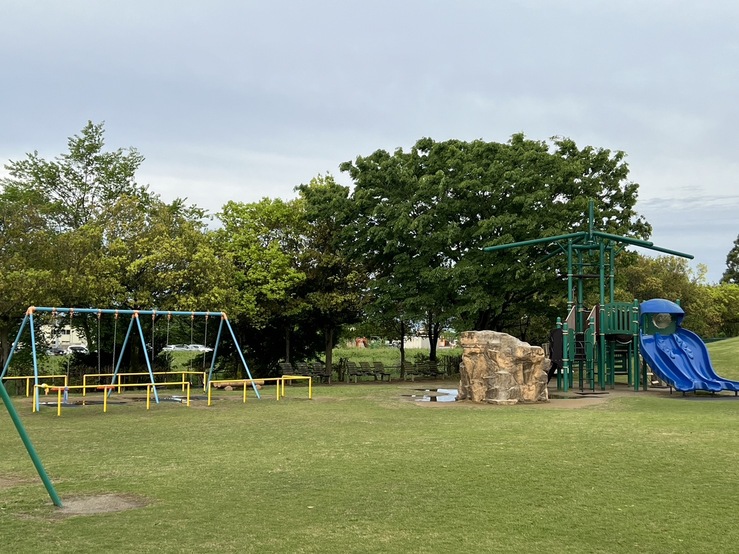 公園にはブランコやすべり台があり、他の遊具と距離があるので走り回ることもできます。