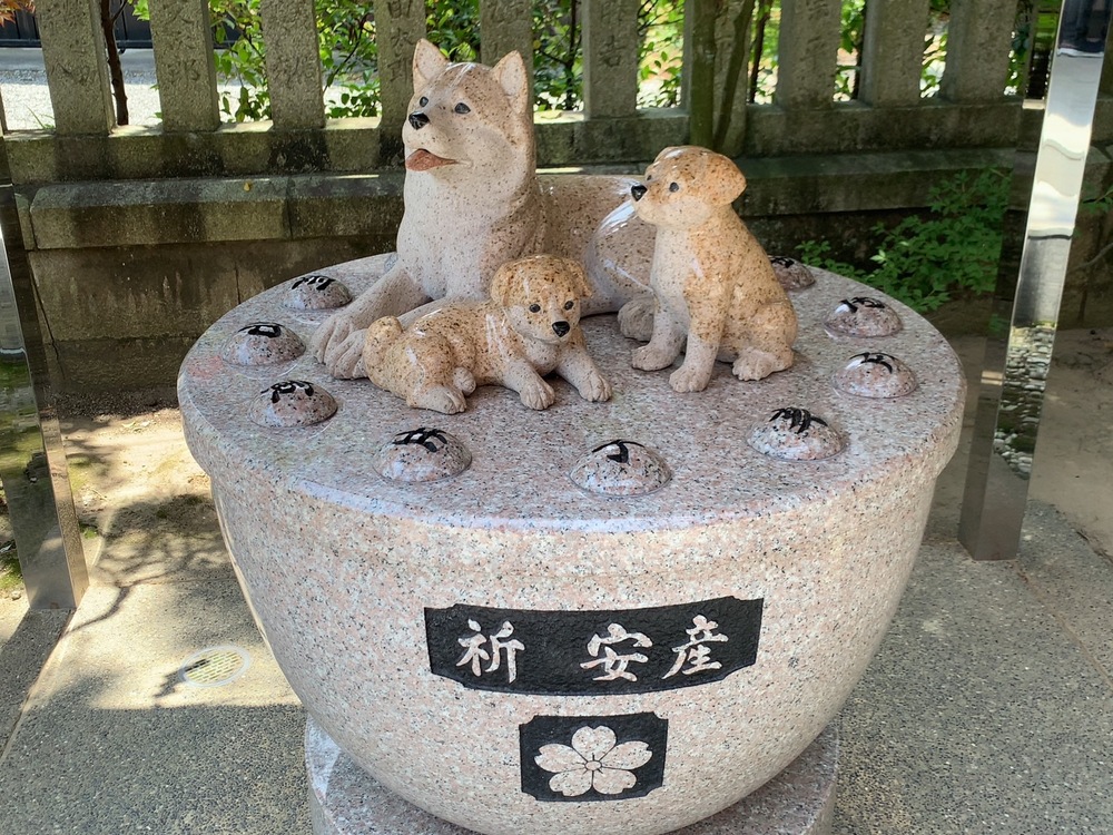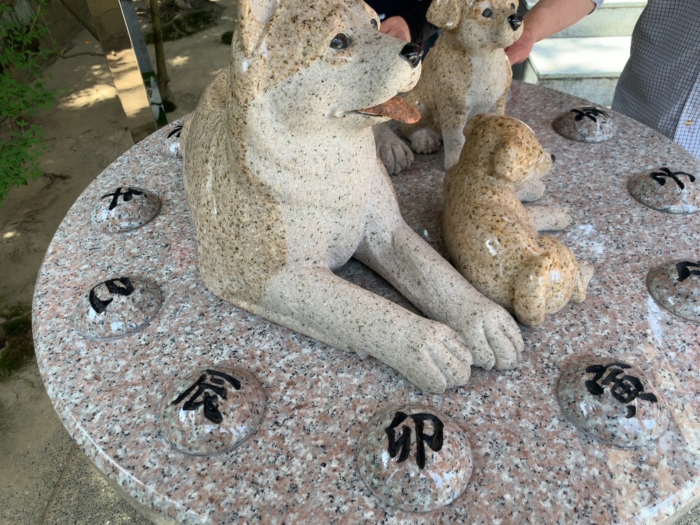 犬の石像の周りには干支が円になって彫られていて、自分の干支を撫でて安産祈願をしましょう。