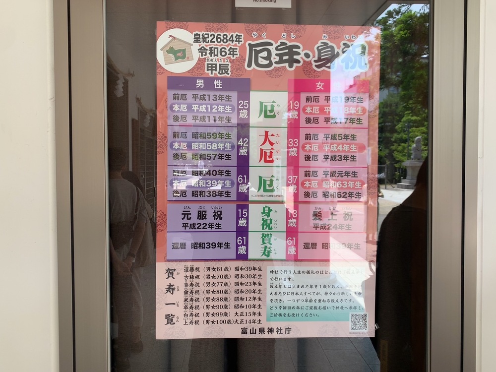 日枝神社には厄年の人が一目でわかるように、ポスターが張られています。
