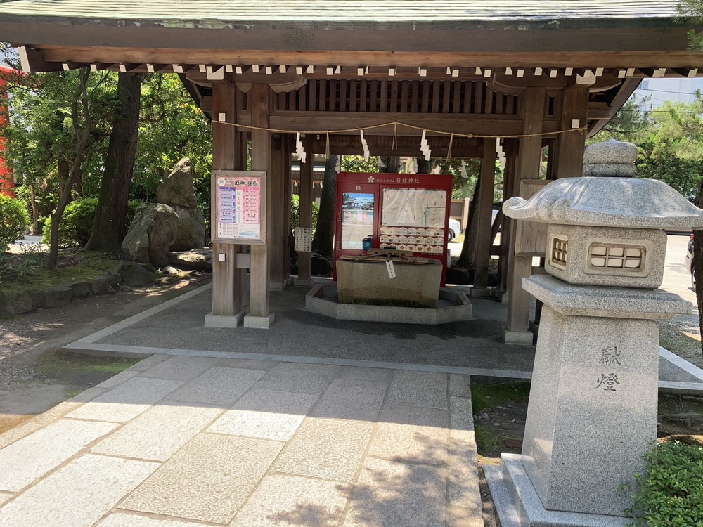 鳥居をくぐる手前のすぐ横には、大きな文字で「日枝神社」と石に刻まれた社標がありました。