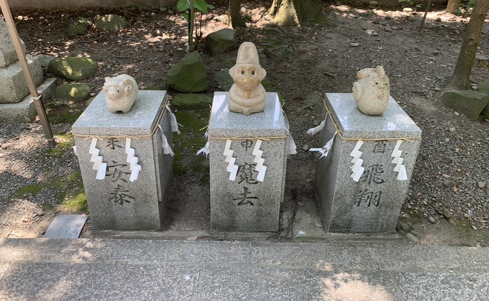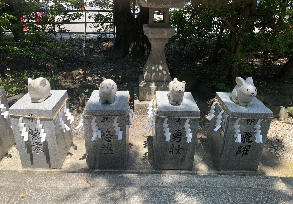 鳥居をくぐると、道の両脇に十二支の石像が置いてありました。