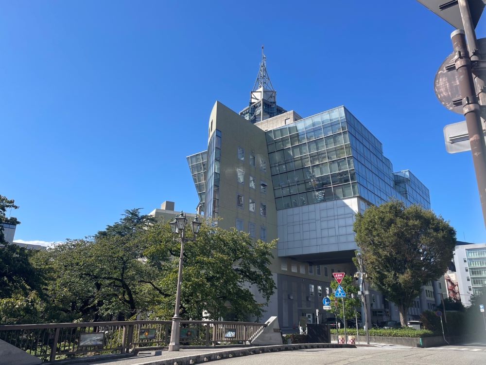 気持ちの良い秋晴れの日を狙い、絶景を求めて富山市役所へ。