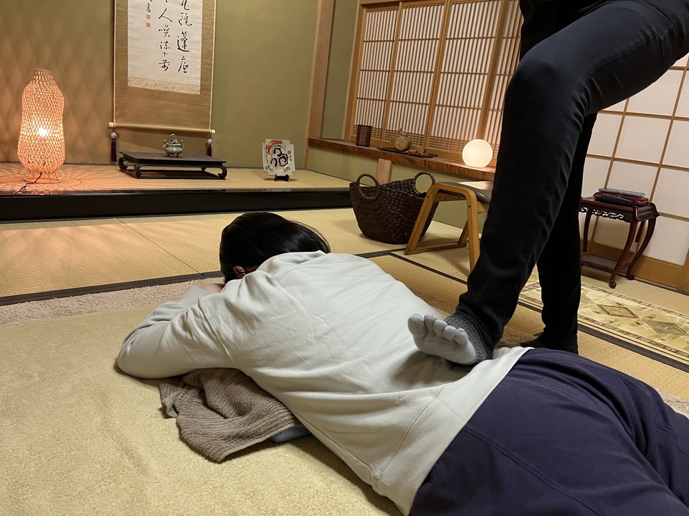 お部屋は風情のある和室で、お布団に寝そべりつつマッサージを受けます。
