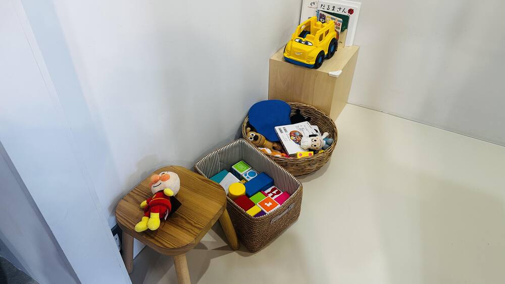 絵本や積み木などのおもちゃが完備されています。気配りがとてもステキですね。