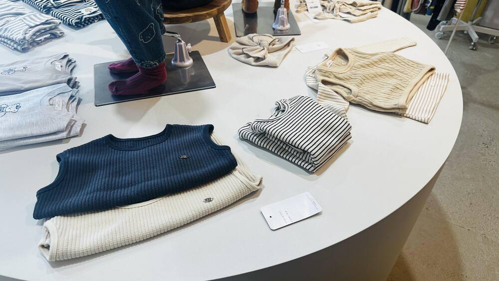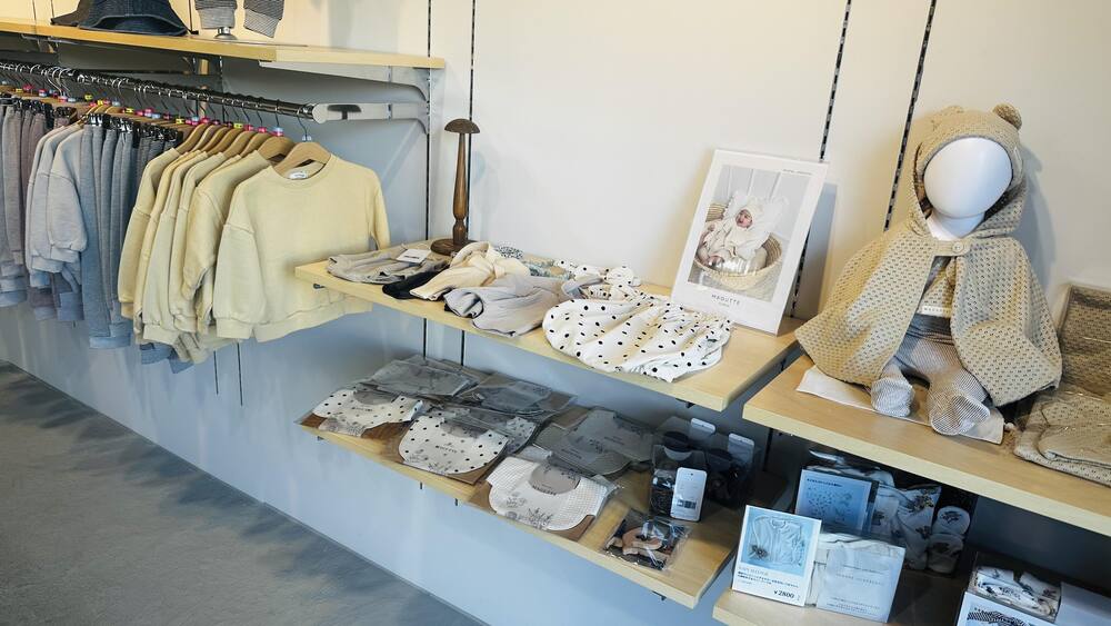 取り扱っているベビー・キッズ服は日本のものとはひと味違う落ち着いたカラーやトレンドを押さえた個性的なデザインのものばかり。