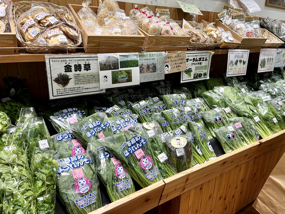 地場もん屋総本店は、直売会員として登録した地元生産者の生産品を委託販売するシステム。富山県の野菜産出額向上と、安心な食材の地産地消を目的として設立されたそう。
