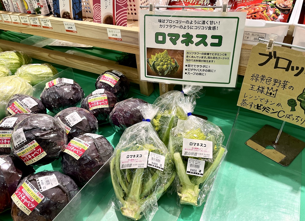 店内には、スーパーでは馴染みのない野菜が並ぶことも多いのですが、今回、気になったのは、ロマネスコ。西洋野菜は、好奇心が湧いて食べてみたいと思う人も多いのではないでしょうか。