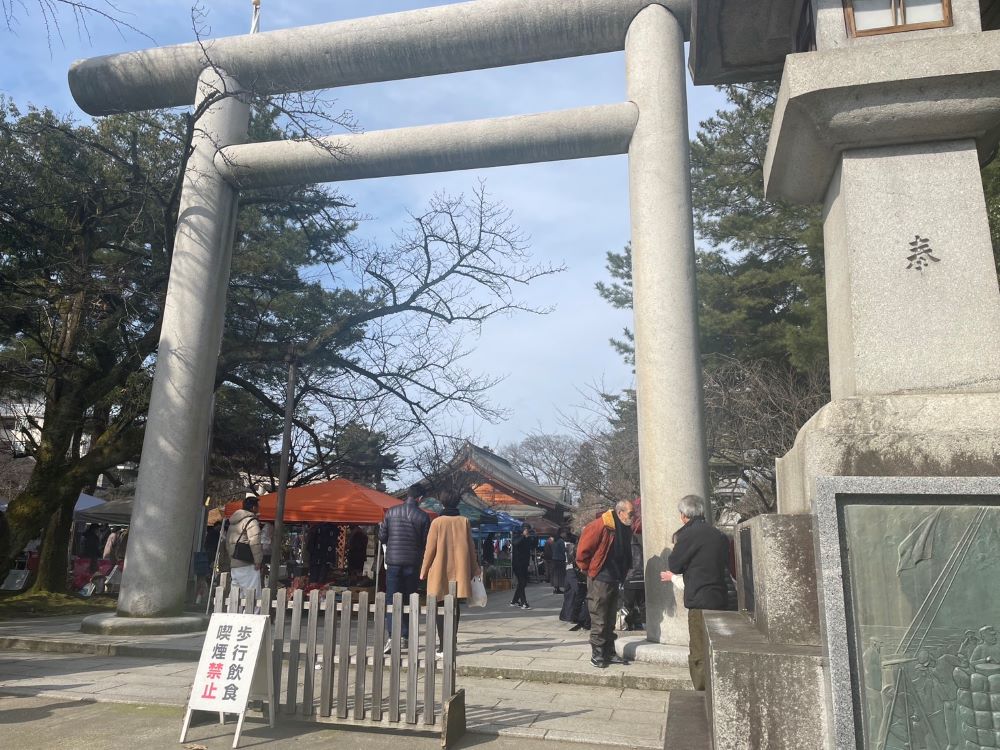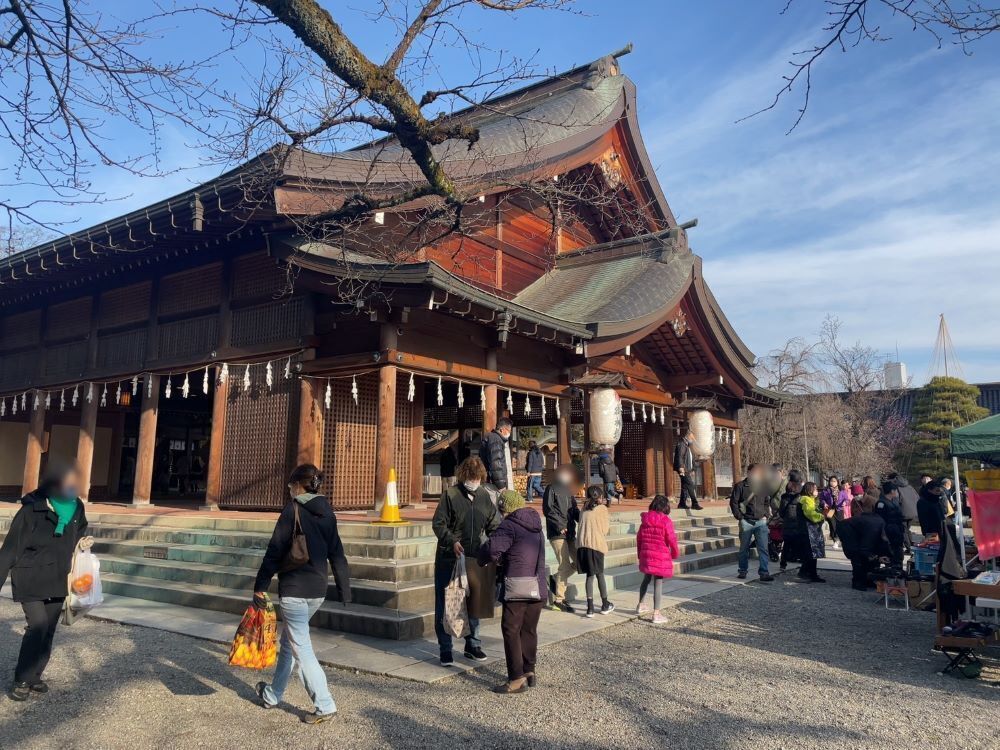 気になるお店に突撃したい気持ちをグッとおさえ、まずは護国神社の大拝殿にお参り。