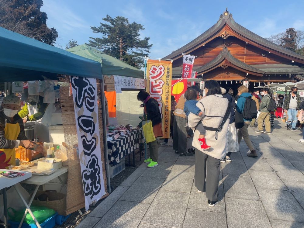 にぎわう神社の傍らで「はふっ」と白い息を吐きながら絶品の野菜スープをいただき、身も心もポカポカになりました。