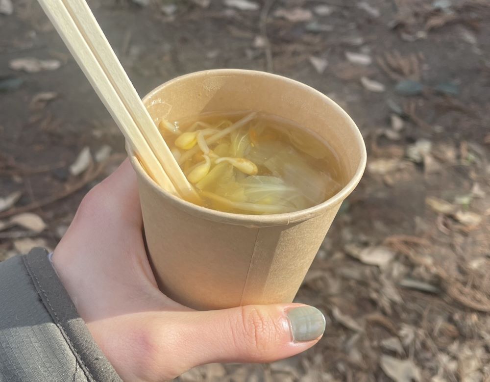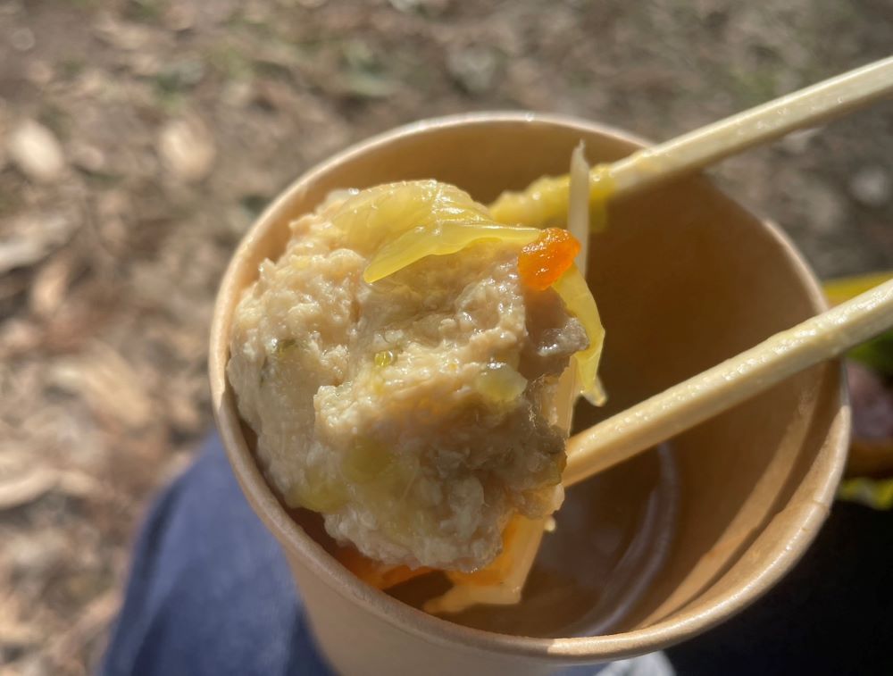 紙コップサイズの小さなスープにもかかわらず、野菜たっぷりで食べ応えバツグンです。